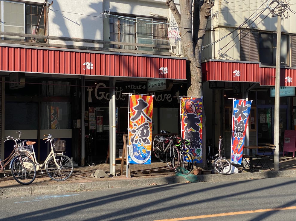 シェフが海で釣った新鮮な魚がメニューになる日も!大漁旗が目印!